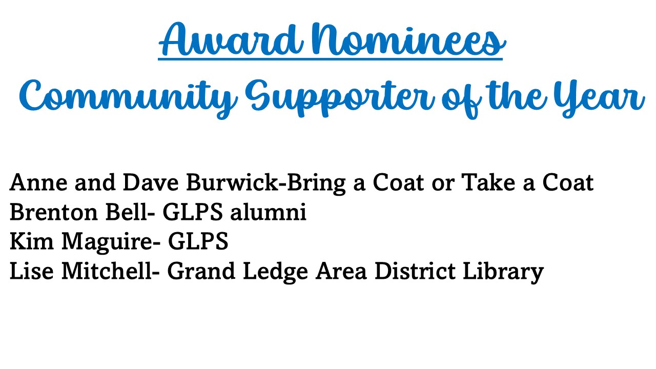 - Educator of the Year - these are our fabulous Grand Ledge Public School teachers who we entrust our children to each and every day
